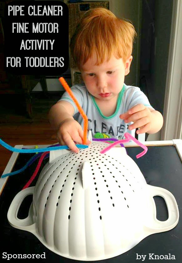 Knoala, a free app that showcases activities for infants-preschoolers, is chock full of fun things to keep your little ones busy. After perusing this awesome app, I was instantly drawn to this fun Pipe Cleaner prompt. This classic fine motor activity is incredibly easy to set up, and has provided us with hours of fun play and learning.
